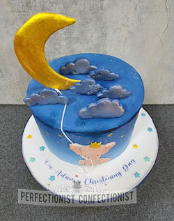 Karen ordered this 8" Strawberry Whirl cake for Adam's Christening Day.